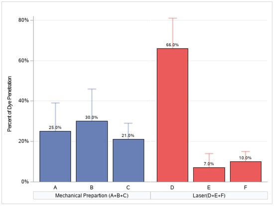 - Borsatto, M.C.; Corona, S.A.M.; Dibb, R.G.P.; Ramos, R.P.; Pécora, J.D. Microleakage of a resin sealant after acid-etching, Er:YAG laser irradiation and air-abrasion of pits and fissures. J. Clin. Laser Med. Surg. 2001, 19, 83–87. [Google Scholar] [CrossRef]