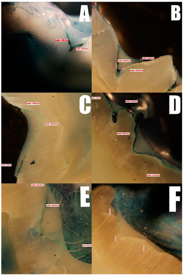 - Nahvi, A.; Razavian, A.; Abedi, H.; Charati, J.Y. A comparison of microleakage in self-etch fissure sealants and conventional fissure sealants with total-etch or self-etch adhesive systems. Eur. J. Dent. 2018, 12, 242–246. [Google Scholar] [CrossRef]