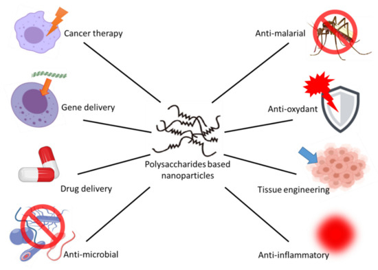 - Ngwuluka, N.C. 19 responsive polysaccharides and polysaccharides-based nanoparticles for drug delivery. In Stimuli Responsive Polymeric Nanocarriers for Drug Delivery Applications; Makhlouf, A.S.H., Abu-Thabit, N.Y., Eds.; Woodhead Publishing Series in Biomaterials; Woodhead Publishing: Cambridge, UK, 2018; Volume 1, pp. 531–554. ISBN 978-0-08-101997-9. [Google Scholar]
