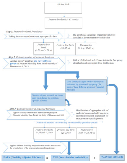 Figure 1 describes the whole process followed in order to estimate Disability-Adjusted Life Years (DALY) attributed to preterm birth.