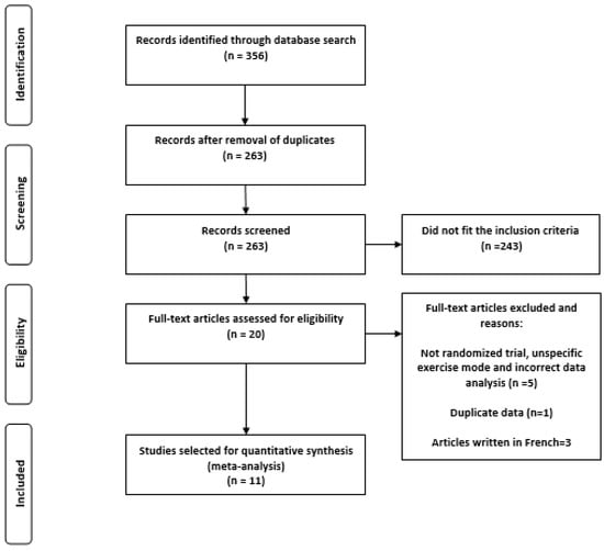 Concerning physical activity, eight manuscripts informed that recruited individuals were not enrolled in any exercise program or realize less than 60 min/week of physical exercise before enrollment in the study [25,26,27,28,29,30,31]. However, three studies did not mention the physical activity of participants prior to training intervention [22,23,24].