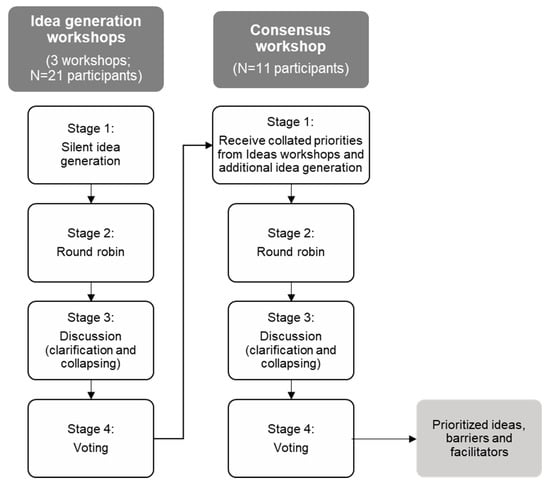 Flowchart of nominal group technique procedure for idea generation and consensus workshops.