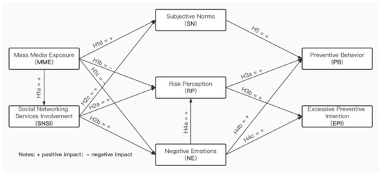In the field of public health, scholars have studied the influential mechanism of health risk information in media on individual cognition, attitude, and behavior. It is generally believed that health risk information can help people understand and perceive risks, take preventive measures, and provide policy support for reducing or mitigating risks [4]. The public’s risk perception, which examines the judgments people make when they are asked to characterize and evaluate hazardous activities and technologies, plays a key role in the response to health emergencies, affecting public policies, and individual behaviors [5]. In addition, the information provided by the media may also affect people’s emotions and subjective norms, and then affect the public’s protective behavior. Related empirical studies have manifested this process in different media platforms, including mass media dominated by newspapers [6], magazines [7], radio [8], television [9], and social media platforms such as social networking sites [10], blogs [11] and instant messaging [12]. During a public health crisis, people can search for and access a large amount of information through various channels including traditional media, interpersonal communications, and new media [13]. This information is vital for properly framing the risk perception and promoting responses [14]. However, false and misleading information in the media, especially social networks, may also promote a false perception of public health risks [15]. Therefore, it is essential to study the impact of different types of media (mass media and social media) on public preventive behavior in the context of a pandemic situation.