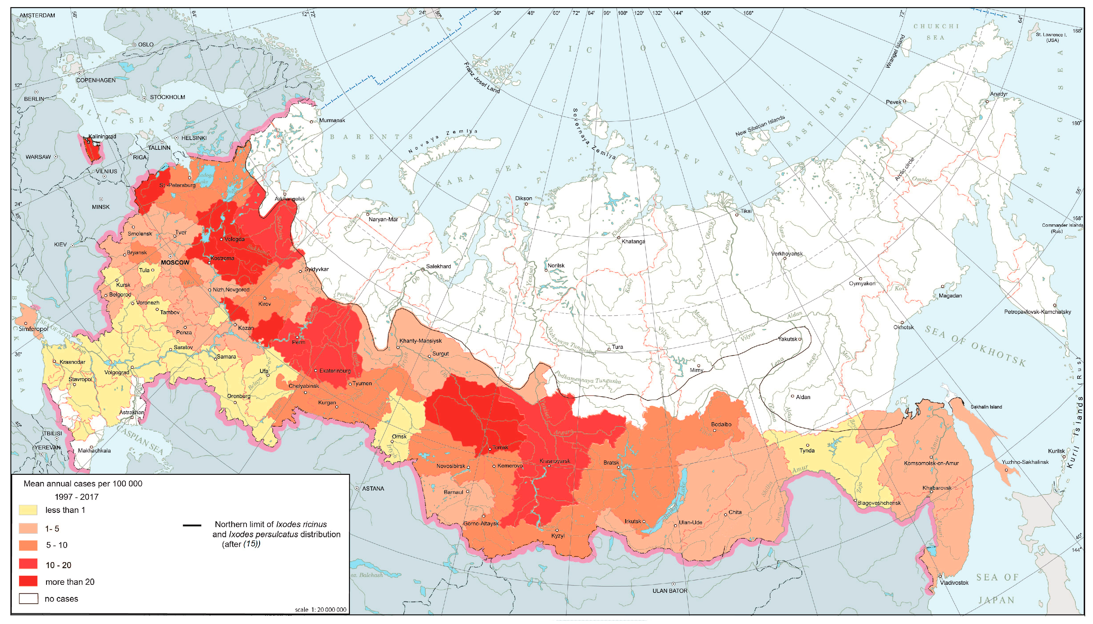 APA StyleMalkhazova, S., Pestina, P., Prasolova, A., & Orlov, D. (2020). Emerging Natural Focal Infectious Diseases in Russia: A Medical–Geographical Study. International Journal of Environmental Research and Public Health, 17(21), 8005. https://doi.org/10.3390/ijerph17218005