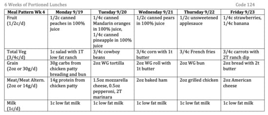 - Patel, K.J.; Strait, K.M.; Hildebrand, D.A.; Amaya, L.L.; Joyce, J.M. Variability in dietary quality of elementary school lunch menus with changes in national school lunch program nutrition standards. Curr. Dev. Nutr. 2020, 4, nzaa138. [Google Scholar] [CrossRef] [PubMed]