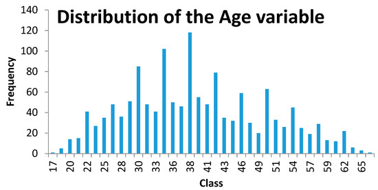 The distribution of the sample pool based on the age of the individuals is shown in Figure 2. The average age is 38, with a minimum of 17 and a maximum of 66.