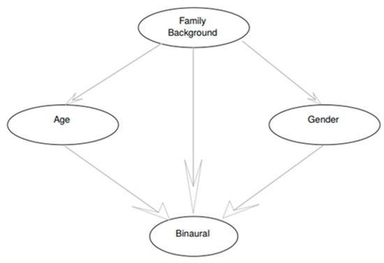 Our study of the factors that influence an individual’s hearing acuity first analyzed the three selected factors—gender, age, and family history of hearing problems—separately. We noted that women exhibit better hearing acuity than men. As for age, the younger respondents (below the age of 29) are more likely to have good hearing, which is a probability that decreases inversely with age. Lastly, as for the family history of hearing problems, those individuals who do not report such a history have a slightly higher likelihood of having better hearing than those who do indicate some type of family history.