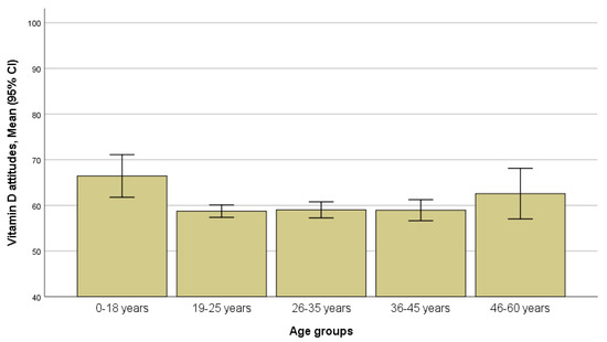 Scores for vitamin D attitudes in age groups (p = 0.019, ANOVA).