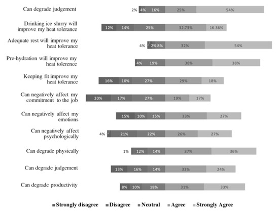 - “Heat stress can negatively affect me psychologically” (W = 1905, p < 0.01);