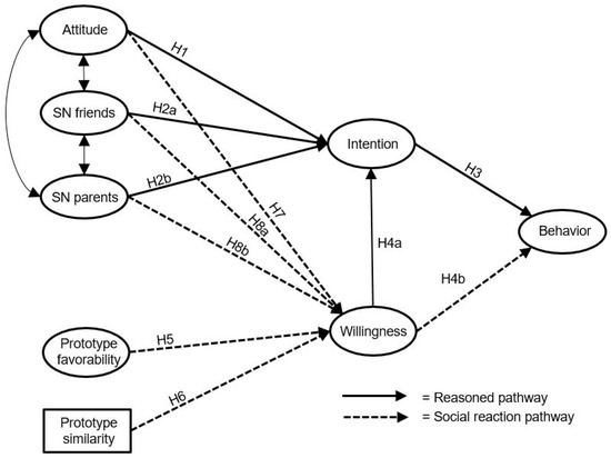 - Gibbons, F.X.; Gerrard, M.; Blanton, H.; Russell, D.W. Reasoned action and social reaction: Willingness and intention as independent predictors of health risk. J. Pers. Soc. Psychol. 1998, 74, 1164–1180. [Google Scholar] [CrossRef]