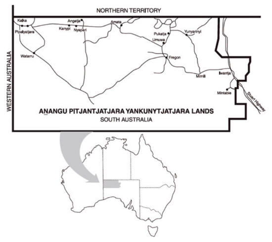 - Australian Bureau of Statistics. Region Data Summary: APY Lands (SA2) (406021138). Available online: https://itt.abs.gov.au/itt/r.jsp?RegionSummary®ion=406021138&dataset=ABS_REGIONAL_ASGS2016&geoconcept=ASGS_2016&measure=MEASURE&datasetASGS=ABS_REGIONAL_ASGS2016&datasetLGA=ABS_REGIONAL_LGA2018®ionLGA=LGA_2018®ionASGS=ASGS_2016 (accessed on 28 July 2020).