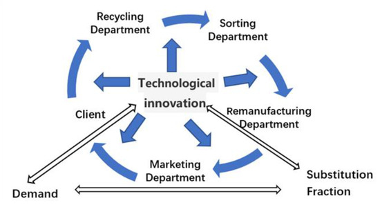 Technological innovation is indispensable in the development of companies. In the study of Sarah King and Naomi, Australia promoted technology development and innovation to support emerging industry. The authors considered the expected growth in consumption and demand for portable equipment and electronic vehicles, the potential economic benefits of lithium-ion battery materials, the lack of infrastructure and capacity to deal with wastes, and the development of policies and regulations for their management [26]. This situation is used worldwide. Innovation, as an inexhaustible source of company development, is the main wing of company recovery systems. However, in the combination of technological innovation and recycling influencing factors, such as innovation and alternative research, how to adjust recycling and reprocessing companies’ driving force is an interesting topic under the overall recycling system.