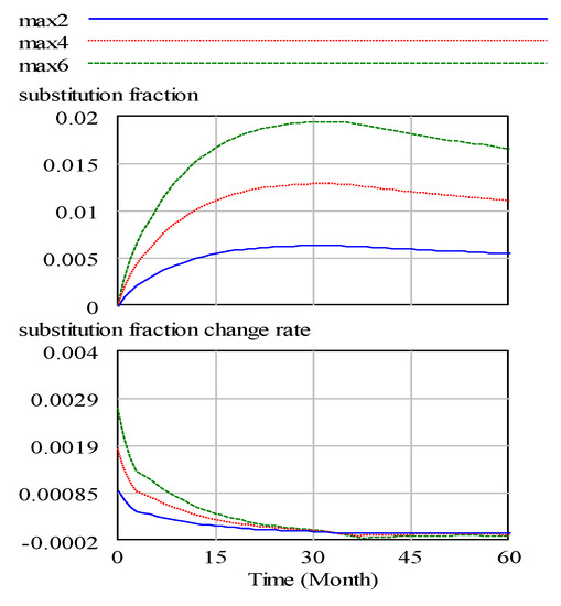 Substitution fraction and change rate. (max2, max4, max6 represent the maximum substitution fraction of the variable is equal to 0.2, 0.4, and 0.6).