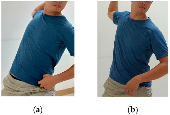 The contract of the torso rotation between two groups. (a) Normal group with larger torso rotation (b) GIRD group with less torso rotation.