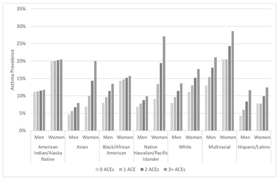 - The positive relationship between ACEs and asthma varies by race/ethnicity and sex, with a disproportionate burden on Black/African American, Hispanic/Latino, AIAN, and multiracial women.
