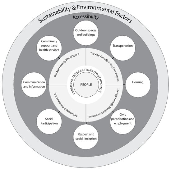 Therefore, given how the notion, narrative, and discourse surrounding the age-friendly movement has continued for over a decade, utilizing the existing eight domains as a blue print, there is still little discourse to providing alternative, extended frameworks to the existing WHO age-friendly [36] with the exception of the work proposed by Marston and van Hoof [30].