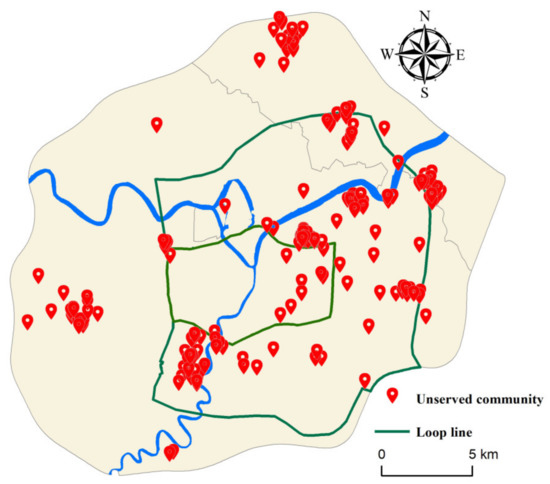 In the formula: Rl represents the supply-demand ratio of green space l within the spatial function threshold of residential community i, Tl represents the opening year of green space l, and Ti represents the construction year of residential community i. The description of other indicators is the same as above. The accessibility value can be understood as the per capita green area after a unique weighting process. With this formula, we can find out some communities. These communities were not served by parks and green spaces at the time they were first built. We call them unserved communities.