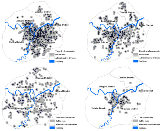 4.3. Comparing the Accessibility of Different Levels of Residential Communitie