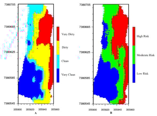 Figure 9 shows the classification results. Most of the beach is considered very dirty and there is a high risk of injury due to the presence of broken glass and bottle caps.