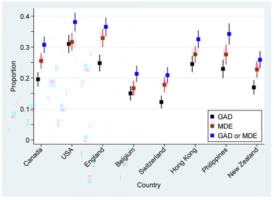 | GAD or MDE | Crude | Adjusted 1 | Adjusted 2 | ||||||