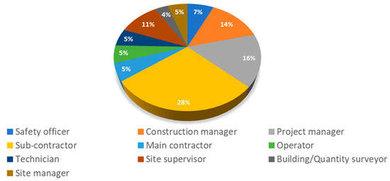 As the first step, a comprehensive and detailed list of safety risks posing threats to the construction workers on Malaysian construction sites was needed. To this end, a meticulous review of the current literature was considered—papers, reports, articles, and so forth. Afterward, structured interviews with experts were conducted. In doing so, safety officers were interviewed to identify the safety risks occurred on construction sites, either through their firsthand experience or any records they had come across in reports and documents, as mentioned in Zhang and Mohandes [40]. Afterwards, the prepared list of risks—obtained from safety officers—was presented to the experts who had at least five years of related experience and a related bachelor’s degree on an area related to construction engineering and management (see Figure 2). These experts were interviewed, where they were asked to add any more risks that had not been considered. This resulted in a comprehensive list of risks. Noteworthy to mention is that many experts from different backgrounds were interviewed. That is, fifty-seven experts who worked in seventeen different construction sites in Kuala Lumpur were involved, in order to increase the reliability and coverage of results.