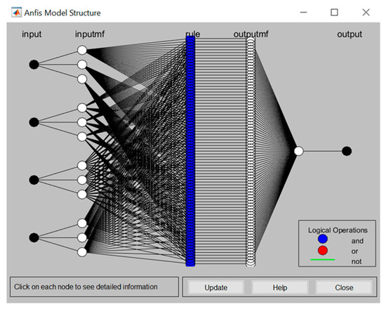 where and represent the weighted output and output of ith rule, respectively. Furthermore,, and are associated parameters. These coefficients encode the rules; they are obtained via the training process of ANFIS.