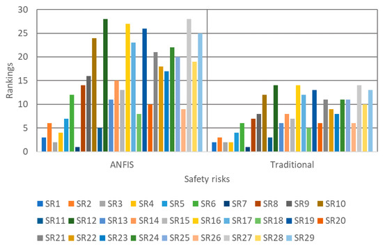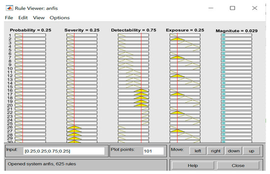 Fuzzy Inference System (FIS) is a decision-making methodology, which takes input values and creates output fuzzy values based on some logic rules [59,60]. Sometimes decisions need to be made based on real-world observations (which can be crisp or fuzzy values) and some fuzzy logic rules (i.e., IF-THEN rules) [26]. Technically, there are two types of Fuzzy Inference Systems, such as Mamdani Fuzzy Inference System and Takagi-Sugeno Fuzzy Model. In this paper, a variant of Takagi-Sugeno Fuzzy Model called ANFIS is adopted to analyze safety risks [61], as discussed below.