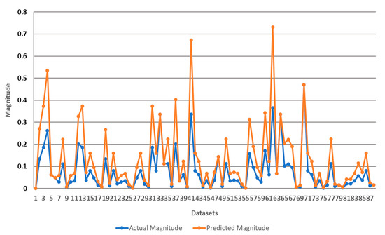 In these equations, and denotes the measured and predicted output, accordingly. The and stand for the average of predicted and measured data. Additionally, n represents the number of samples, by which the prediction accuracy is assessed.
