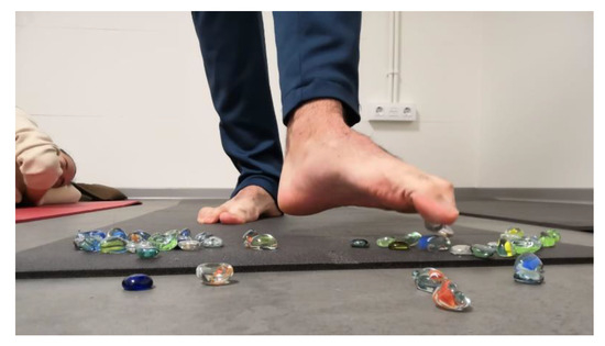 - Picking up small objects with the toes. In standing position subjects must pick up little stones with the toes, and release them in other places (Figure 1).