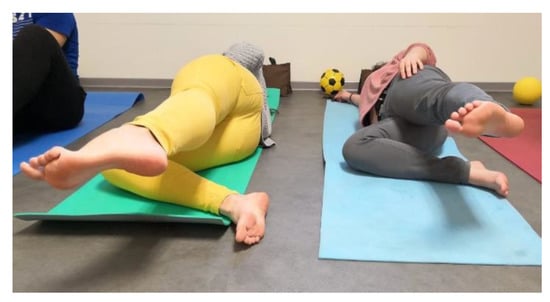 - Hip abduction. In the lateral position, the leg in contact with the ground is bent. The contralateral leg will be aligned with the trunk. Subjects must contract 8 s moving away the leg from the other, and 8 s of muscle relaxation when lowering it again (Figure 3).