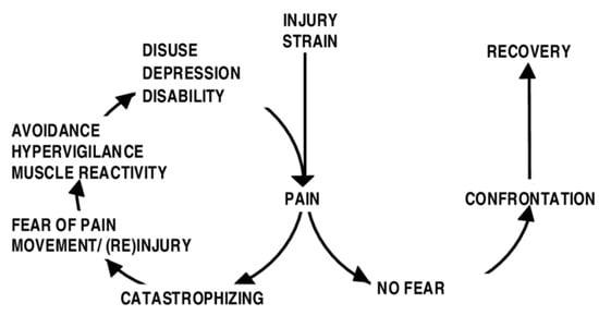 - Crombez, G.; Eccleston, C.; Van Damme, S.; Vlaeyen, J.W.; Karoly, P. Fear-Avoidance Model of Chronic Pain: The next generation. Clin. J. Pain. 2012, 28, 475–483. [Google Scholar] [CrossRef] [PubMed]