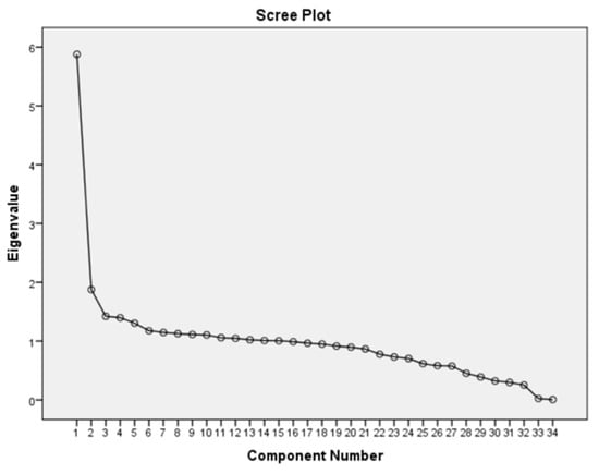 The scree plots in Figure 2, Figure 3 and Figure 4 display the eigenvalues associated with a component in descending order against the component number. The results from three scree plots indicate that the first three components would be sufficient to explain the original variables. These three components are declared to be sufficient in explaining the original variables because the slope of the curve is leveling off (the elbow) after the third component.