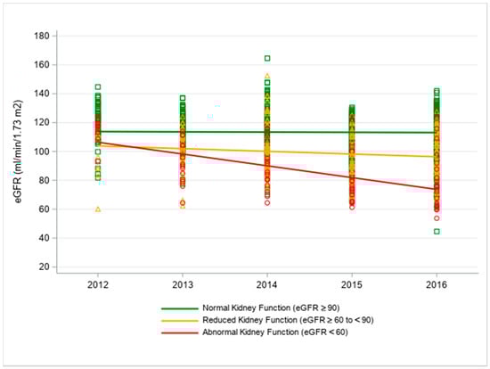 3.4. Retrospective Assessment: Change in eGFR from 2012 to 2016