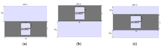 Figure 16 presents the three proposed antenna versions that have been considered for investigation. The layout (both the silicone substrate and the metallization) has been extended toward the regions close to an electric energy density: