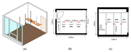 2.1. Experimental Space and Measuring Equipment