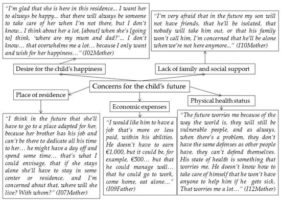 Furthermore, all the parents said that their family’s income had been seriously affected. From the time their child had been diagnosed, not only had they lost or abandoned their job to take care of the child with ID, but also they had had to carry out many medical and psychological interventions to improve their child’s quality of life. These interventions had been quite costly, and some parents had even had to ask for financial aid from their closest family members because they had found it difficult to obtain disability benefits when needed aid. They still had concerns about their finances at the time of the interview because these parents feared leaving their children without enough money to afford a residence where they would be well cared for in the future.