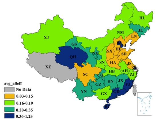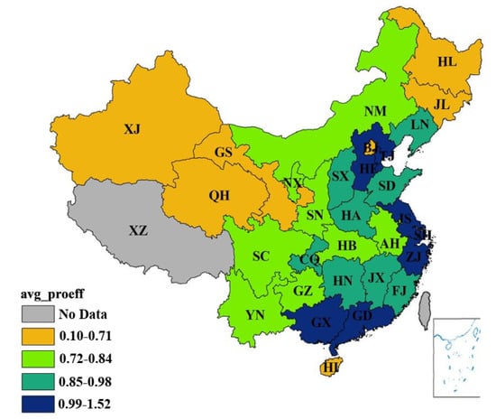 The provincial environmental treatment efficiency of China. (Source: Authors compiled).