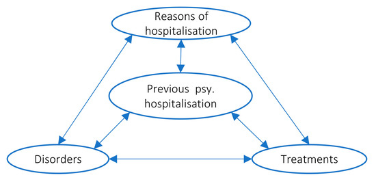 3.2.3. Associations between Disorders and Reasons for Hospitalization