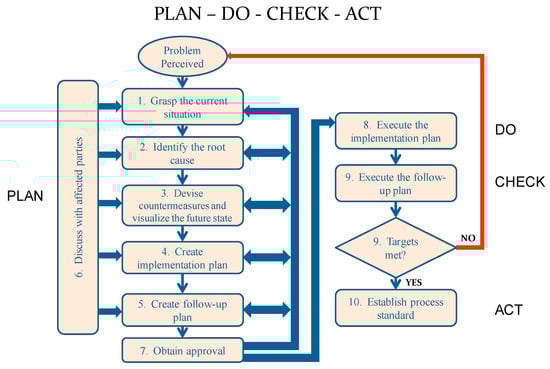 31], Kaizen, which means “continuous improvement” (CI), also refers to trying or experimenting with new ways of doing things through the Plan-Do-Check-Act (PDCA) cycle. It is a focused and structured improvement project, using a dedicated cross-functional team to improve a targeted work area, with specific goals, in an accelerated timeframe [