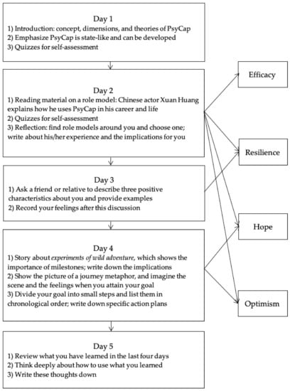 Therefore, our study aims to generalize the effectiveness of the PCI model in mainland China in order to enrich the literature on positive psychology interventions in non-Western countries. The theory of the development of the four core constructs of PsyCap has been illustrated in detail in the literature [,]. Here, we summarize it briefly.