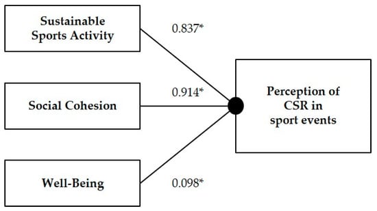 - These dimensions resulting from the CFA combine the indicators necessary to determine the residents’ perceptions of CSR implemented in a sports event. Actions linked to “Sustainable Sports Activity”, such as sports for all, the encouragement of physical activity, the promotion of good sports practices in the natural environment, cultural exchange, tourist development, etc.; “Social Cohesion”, such as promoting the value and conservation of historical and cultural heritage, the encouragement and development of local trade, investments in sports, the promotion of cultural activities, etc.; and “Well-being”, such as minimizing negative impacts, such as pollution, traffic congestion or roadblocks, entertainment, environmental conservation, etc., could, if integrated into the planning and organization of the event, make the event socially responsible.