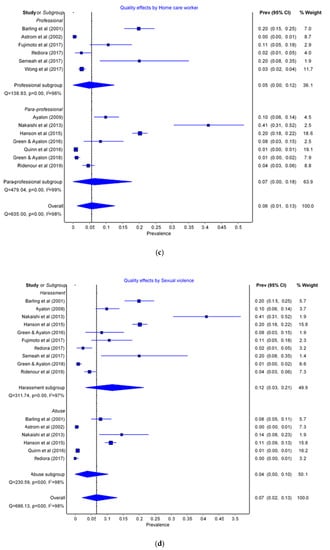 2.4.2. Subgroup Meta-Analysis of the Prevalence of Sexual Violence among Home-Care HCWs