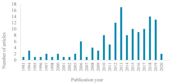 Key characteristics of the 137 articles included in the review are summarized in the Supplementary Material (see Supplementary Material Table S7). The number of relevant articles has increased over the last 30 years, with approximately half of all studies published in the last 5 years (2014–2019) (Figure 3).
