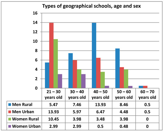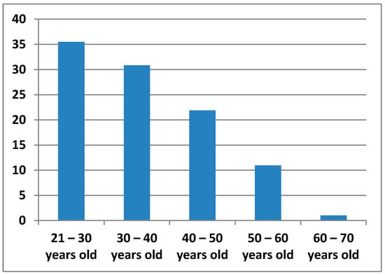 Once the results are known, we can say that the difference between men and women participating in the questionnaire is not very significant, being at 8.4%. The percentage of women who have participated in the questionnaire between 21–30 years old is considerably higher than that of men in this same age group. However, there is greater participation by men in the 30–40 age groups, as well as in the 40–50 age groups. The percentage of participants is equal in the 50–60 age brackets but stands out the participation of men in the 60–70 age brackets, as women in this age bracket have not participated.