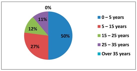 The percentage of teaching experience that stands out the most is that of 0–5 years, which is half of the people surveyed. This is because most of the people who have participated in the survey are those between 21–30 years old, who have, for the most part, a contract teacher position. The second most striking percentage is that of the 5–15-year age range, which also coincides with the percentage of people working with a permanent teacher position in the 30–50 year age group.