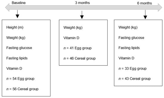 - Fuller, N.R.; Sainsbury, A.; Caterson, I.D.; Denyer, G.; Fong, M.; Gerofi, J.; Leung, C.; Lau, N.S.; Williams, K.H.; Januszewski, A.S.; et al. Effect of a high-egg diet on cardiometabolic risk factors in people with type 2 diabetes: The diabetes and egg (diabegg) study-randomized weight-loss and follow-up phase. Am. J. Clin. Nutr. 2018, 107, 921–931. [Google Scholar] [CrossRef] [PubMed]