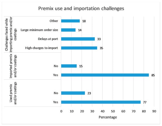 | Premix import challenges | 1 = Delays at port 2 = High charges to import 3 = Large minimum order size 4 = Other |