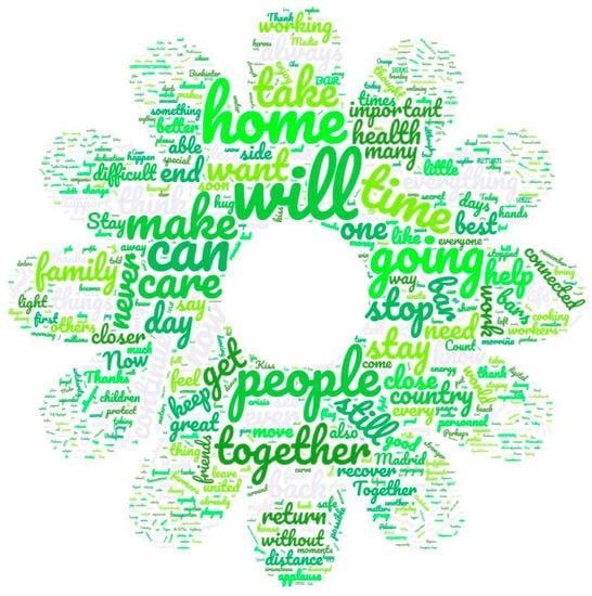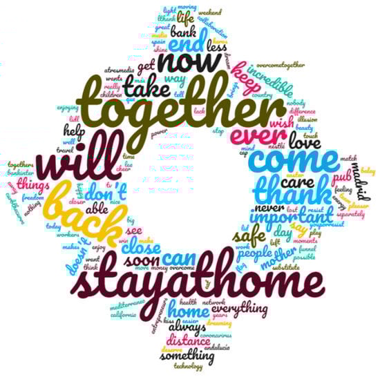 - Iglesias-Sánchez, P.P.; Vaccaro Witt, G.F.; Cabrera, F.E.; Jambrino-Maldonado, C. The Contagion of Sentiments during the COVID-19 Pandemic Crisis: The Case of Isolation in Spain. Int. J. Environ. Res. Pub. Health 2020, 17, 5918. [Google Scholar] [CrossRef] [PubMed]