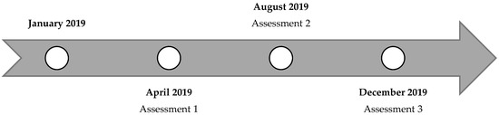 This study followed a cohort study design. Over 52 weeks, all training sessions were monitored using global positioning systems (GPS) that quantified both the total distance covered and, with the use of the Borg CR-10 scale, the RPE and session-RPE. The athletes and their coaches determined the nature and content of the training sessions. A total of 148.12 ± 57.53 training sessions was analyzed for each athlete. Every four months (Figure 1), athletes were assessed for their anthropometry and aerobic performance; for each week of training, load indicators were used to calculate the acute load (the sum of the weekly training loads), the acute:chronic workload ratio, the training monotony, and the training strain. Training weeks were defined as starting on Monday and ending on Sunday. Throughout the testing, pace was calculated and used as the primary performance outcome.