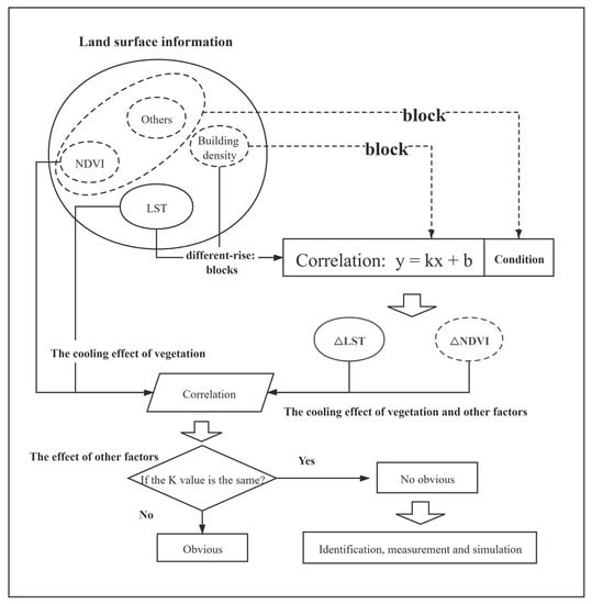 With the development of urbanization, the phenomenon of the urban heat island has become more obvious, and the change of LST has a great relationship with a city’s environment. In order to analyze the impact of building characteristics on the cooling effect of vegetation, it is necessary to eliminate other factors in the study area.